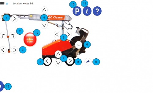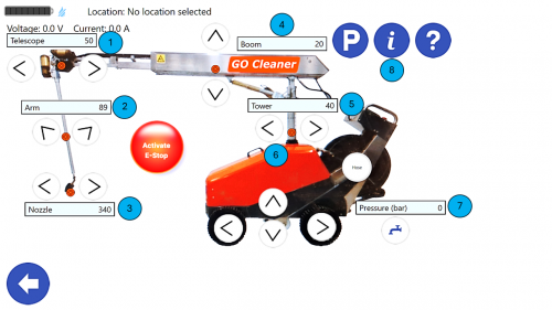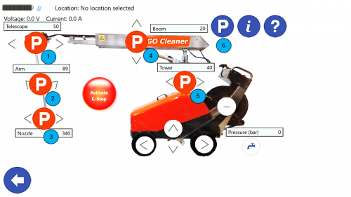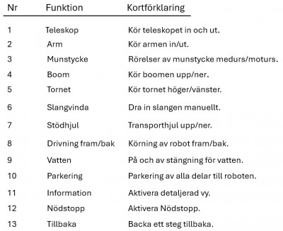 Den manuella skärmen låter dig flytta varje funktion, och i taget. Tryck på valfri pil för att flytta den relaterade funktionen i den angivna riktningen. Använd den här skärmen när du transporterar roboten. Joysticken fungerar även när den här skärmen visar.